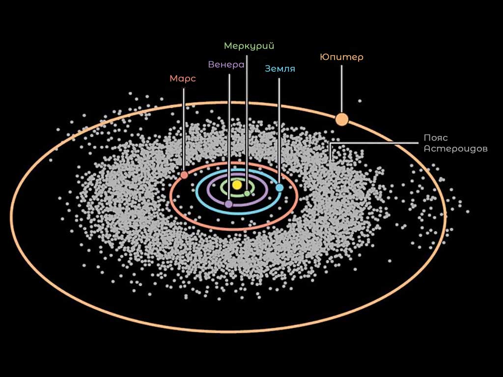 Те астероиды, что находятся ближе к Марсу, состоят из железа и скалистых горных пород. Те, что расположены ближе к Юпитеру, содержат много льда, имеют состав, схожий с первоначальным составом газопылевого облака.
