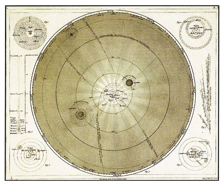 Затем Ньютон показал, что, согласно его закону, гравитация заставляет Луну двигаться по эллиптической орбите вокруг Земли, а Землю и другие планеты — следовать по эллиптическим траекториям вокруг Солнца. Коперниканская модель избавилась от небесных сфер Птолемея, а заодно и от представлений о том, что Вселенная имеет естественную границу. Так называемые неподвижные звезды не меняют свои видимые взаимные положения в процессе движения Земли вокруг Солнца. Поэтому естественно было предположить, что это такие же объекты, как наше Солнце, но расположенные гораздо дальше.